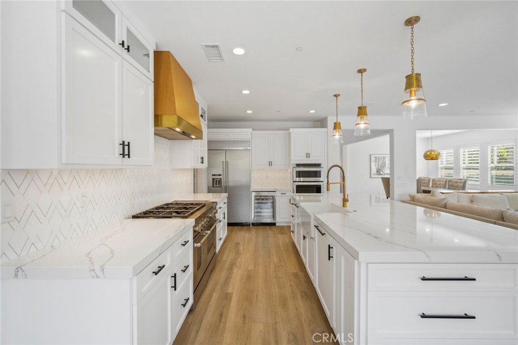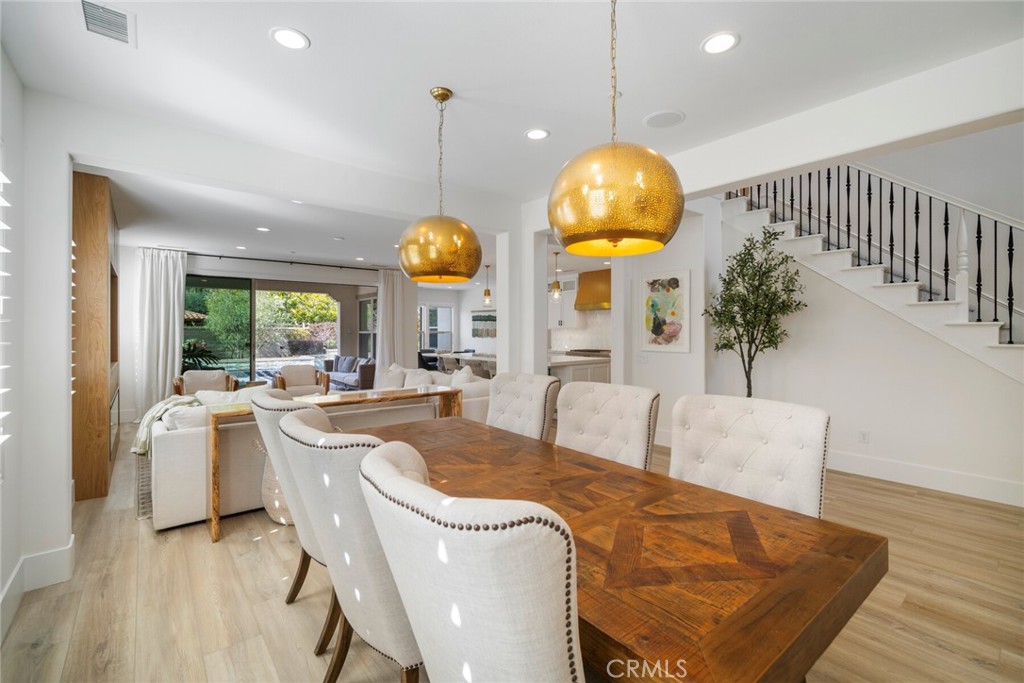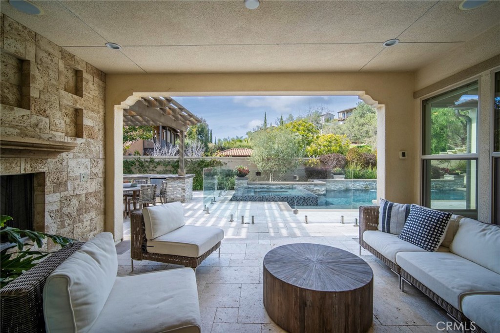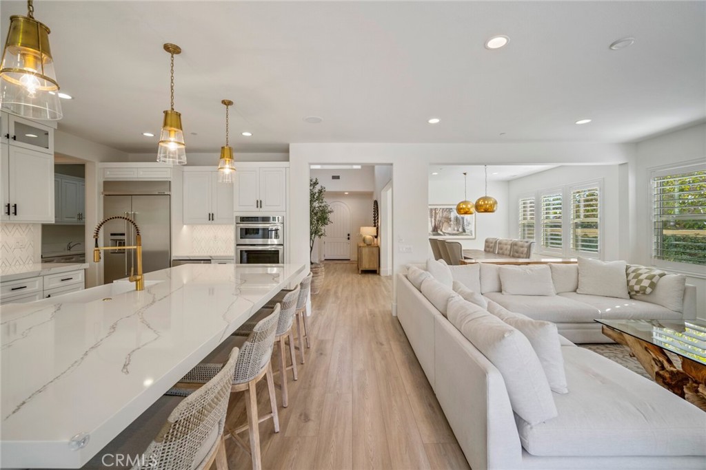 Beautifully appointed executive pool home in the prestigious golf course Carillon community! Nestled in the rolling hills of Talega in coveted San Clemente, this California coastal DREAM HOME has been professionally reimagined and recently updated with top-of-the-line finishes throughout. Aligning elegance, sophistication, quality, and luxury from the moment you enter, this immaculate residence will redefine your interpretation of "turnkey." New LVP flooring graces the main level, where bright, open concept, updated spaces delight at every turn. The heart of the home showcases a stunning kitchen remodel, featuring new cabinets, quartz countertops, Thassos & Brass waterjet mosaic marble backsplash, high-end appliances including beverage refrigerator, updated lighting, stylish hardware, farmhouse sink, brass faucet and more. The family/living room boasts a custom-built entertainment accent wall with 72" electric fireplace, epitomizing the bespoke, appealing finishes throughout. A breakfast nook, kitchen island seating, along with formal dining room, provide backdrops for casual, everyday living and formal entertaining alike. Stepping outside, the California room is the perfect transition to your private, resort like backyard. With an outdoor fireplace and covered seating, built in BBQ/kitchen, lush and immaculately maintained landscaping, Pebbletech pool/spa with Baja shelf and waterfall features, hillside views, and frameless glass pool fencing, absolutely nothing is left to be desired in this outdoor oasis! Back inside, the distinctive floorplan offers options and possibilities for lifestyles and needs at every stage- the first floor features a primary suite AND a 2nd bedroom with en suite bath. Upstairs, a 2nd primary suite, 2 additional bedrooms with shared bath, plus spacious loft featuring wet bar and adjoining deck accentuate the functional and flexible layout. From empty nesters, to work-from-home professionals, to family living, this stunning residence presents endless possibilities. Additional upgrades/updates include: new paint throughout, updated powder room with floating vanity, coastal abstract carpet on staircase, new carpet in upstairs bedrooms, new LVP in loft, EV charging, beautifully appointed landscape and hardscape, and SO much more. In close proximity to shops, restaurants, golf course, clubhouses, beaches, and award-winning schools...seize the day and your opportunity to call 17 Via Franca HOME!
