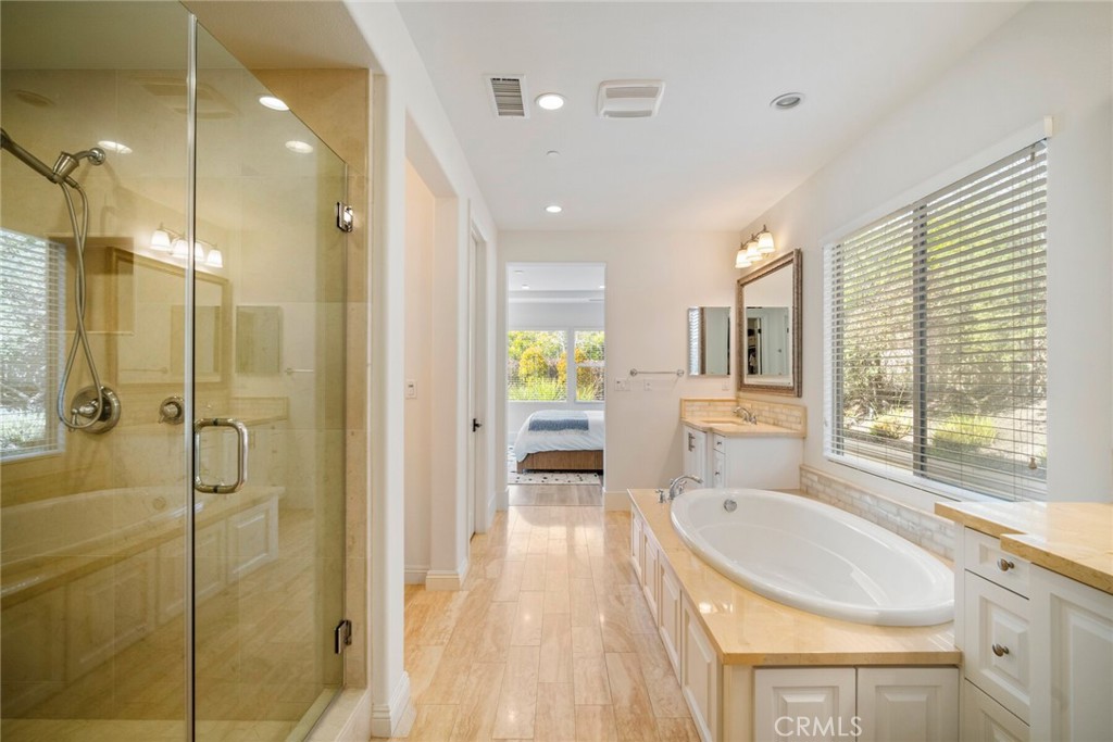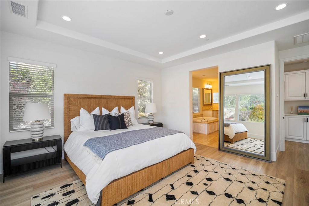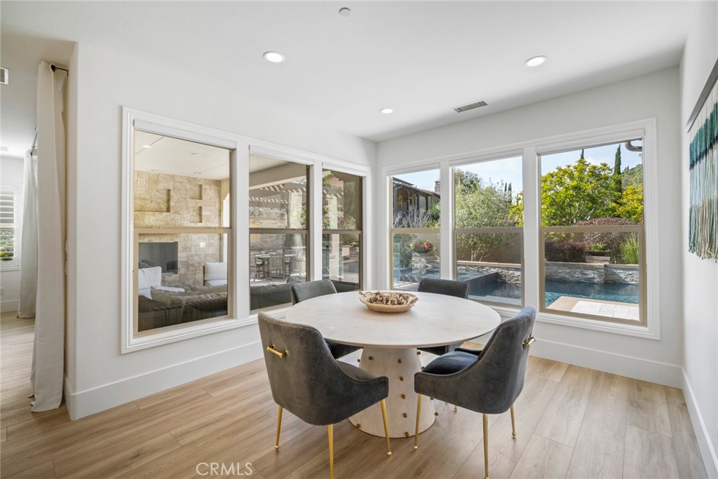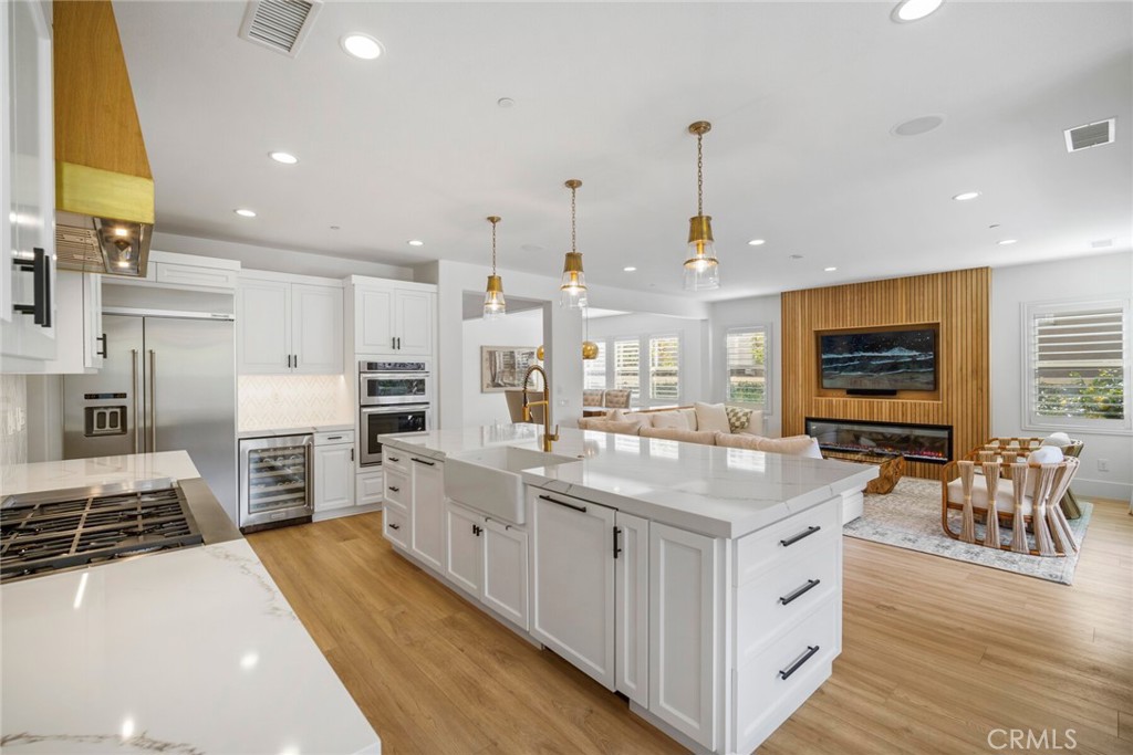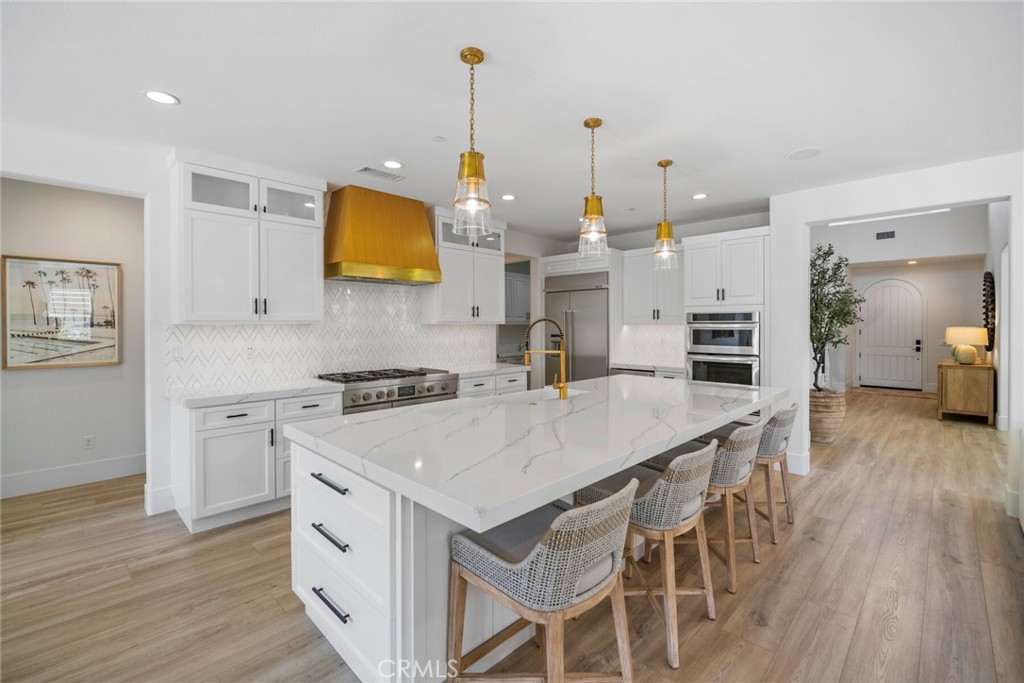 Beautifully appointed executive pool home in the prestigious golf course Carillon community! Nestled in the rolling hills of Talega in coveted San Clemente, this California coastal DREAM HOME has been professionally reimagined and recently updated with top-of-the-line finishes throughout. Aligning elegance, sophistication, quality, and luxury from the moment you enter, this immaculate residence will redefine your interpretation of "turnkey." New LVP flooring graces the main level, where bright, open concept, updated spaces delight at every turn. The heart of the home showcases a stunning kitchen remodel, featuring new cabinets, quartz countertops, Thassos & Brass waterjet mosaic marble backsplash, high-end appliances including beverage refrigerator, updated lighting, stylish hardware, farmhouse sink, brass faucet and more. The family/living room boasts a custom-built entertainment accent wall with 72" electric fireplace, epitomizing the bespoke, appealing finishes throughout. A breakfast nook, kitchen island seating, along with formal dining room, provide backdrops for casual, everyday living and formal entertaining alike. Stepping outside, the California room is the perfect transition to your private, resort like backyard. With an outdoor fireplace and covered seating, built in BBQ/kitchen, lush and immaculately maintained landscaping, Pebbletech pool/spa with Baja shelf and waterfall features, hillside views, and frameless glass pool fencing, absolutely nothing is left to be desired in this outdoor oasis! Back inside, the distinctive floorplan offers options and possibilities for lifestyles and needs at every stage- the first floor features a primary suite AND a 2nd bedroom with en suite bath. Upstairs, a 2nd primary suite, 2 additional bedrooms with shared bath, plus spacious loft featuring wet bar and adjoining deck accentuate the functional and flexible layout. From empty nesters, to work-from-home professionals, to family living, this stunning residence presents endless possibilities. Additional upgrades/updates include: new paint throughout, updated powder room with floating vanity, coastal abstract carpet on staircase, new carpet in upstairs bedrooms, new LVP in loft, EV charging, beautifully appointed landscape and hardscape, and SO much more. In close proximity to shops, restaurants, golf course, clubhouses, beaches, and award-winning schools...seize the day and your opportunity to call 17 Via Franca HOME!